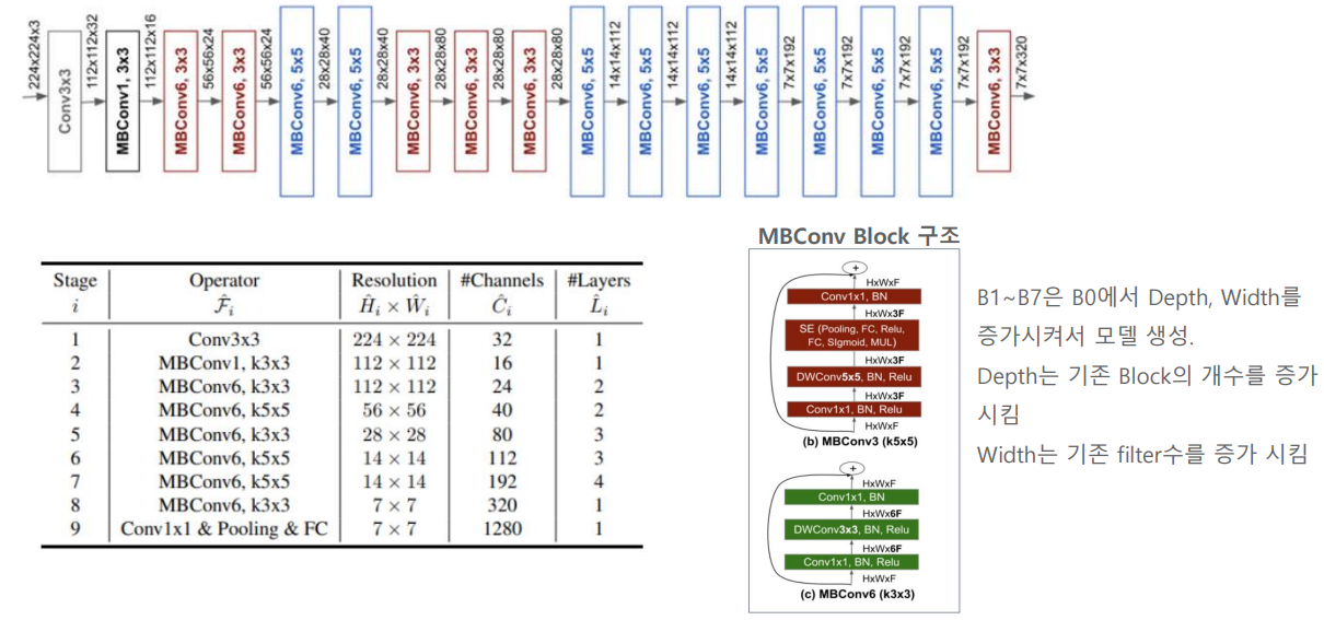MnasNet과 동일한 search space를 사용한 구조입니다. 아래는 모델마다 적정 크기입니다. 웬만하면 맞춰주시는 게 좋습니다.