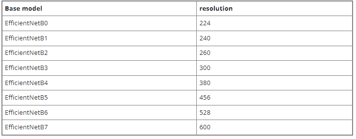 위의 efficientnet keras의 깃헙에서 일부만 가져온 소스인데 return EfficientNet에 1, 2, 3번째 파라미터를 보면 순서대로 width, depth, resolution입니다. 크기에 따라 모두 맞춰 만들어졌기 때문에 모델에 따른 크기를 맞춰주는 것이 좋습니다.
