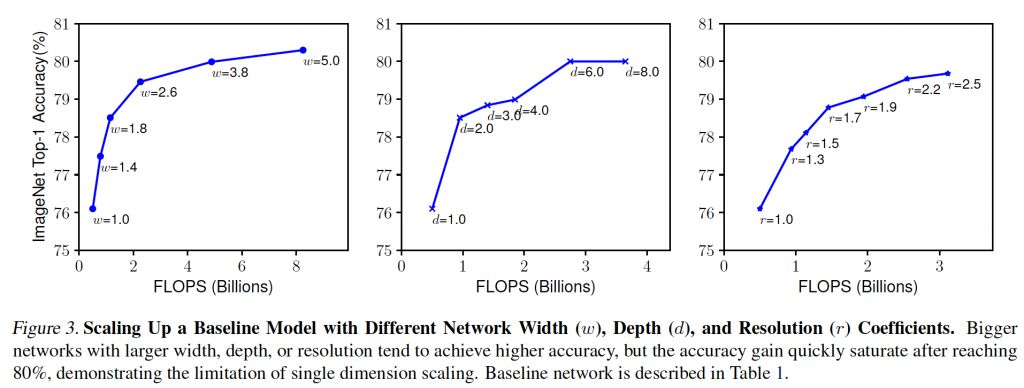 네트워크의 깊이(Depth), 필터 수(Width), 이미지 Resolution 크기를 최적으로 조합하여 모델 성능 극대화하는 것입니다.